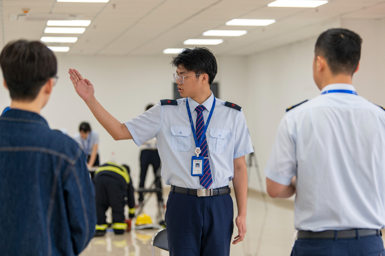 6月11日,在浙江省金華市金義東市域軌道交通工程塘雅車輛段,青年職工選手在參加軌道交通應(yīng)急處置項目技能比武。