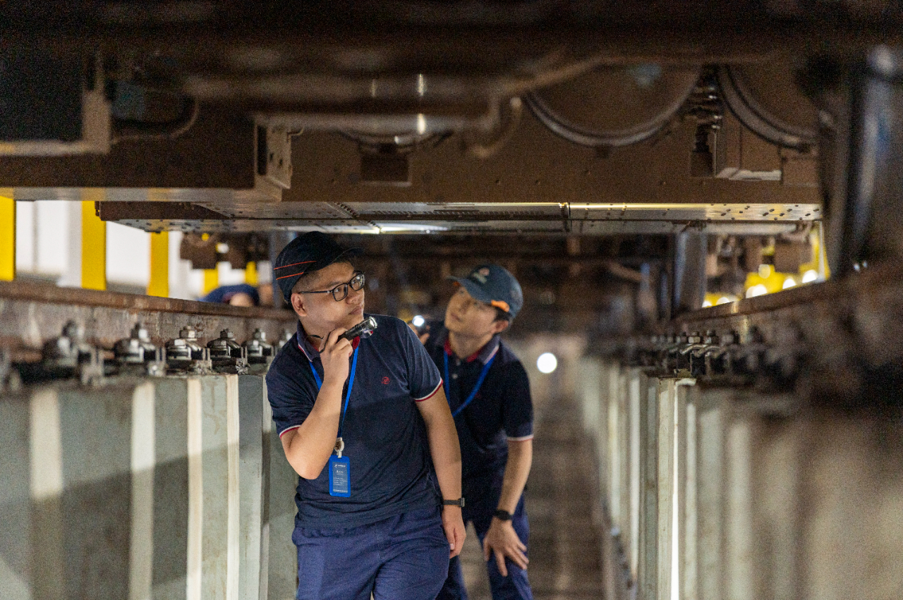 6月11日,在浙江省金華市金義東市域軌道交通工程塘雅車輛段,青年職工選手在參加軌道交通車廂安檢項目技能比武。當日,浙江省金華市舉行第三屆軌道交通青年職工技能比武大賽。從全市1000多名專業(yè)人員中選撥出來的282名青年職工選手參加應(yīng)急處置、服務(wù)禮儀、手動駕駛、行車故障處置等13個項目的角逐,全面提升城市軌道交通從業(yè)人員的業(yè)務(wù)技能水平,推動技能人才隊伍高質(zhì)量發(fā)展。
