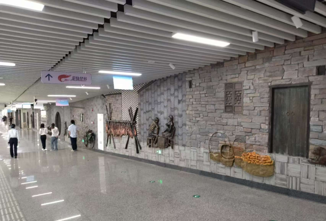 在高鐵換乘通道中的傳統(tǒng)文化長廊,有老金華的故事,也有享譽(yù)全國的金華特產(chǎn)—金華火腿和金華酥餅,不僅向外地游客展示了金華的傳統(tǒng)文化魅力,也讓歸鄉(xiāng)的游子感受到家鄉(xiāng)的溫暖。