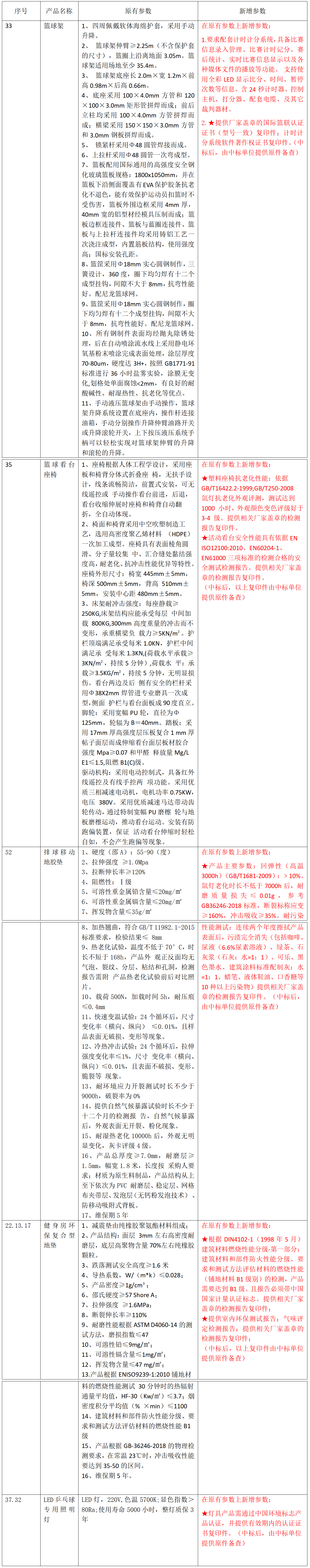 招標文件第三章招標項目需求附件《健身器材清單》部分技術(shù)參數(shù)修改如下,其余未修改項按原招標文件執(zhí)行。
